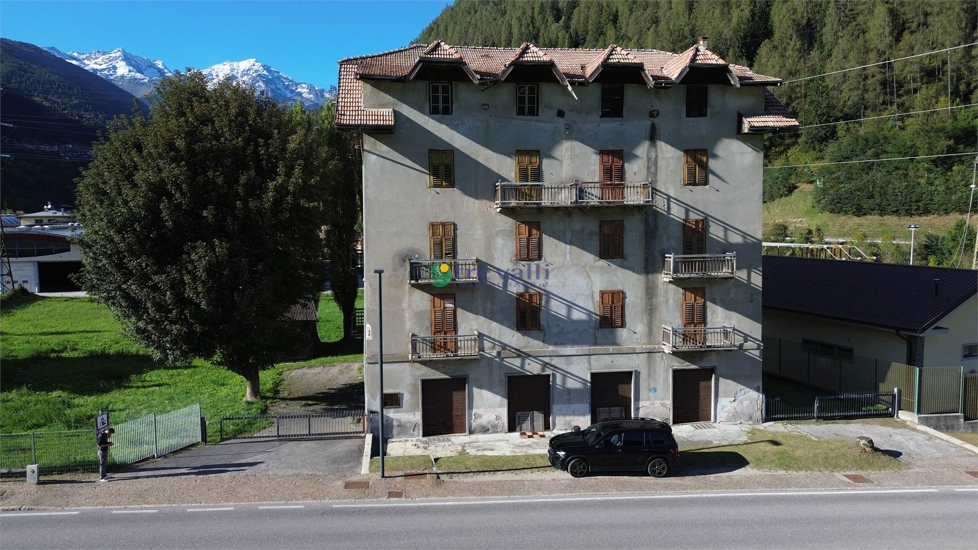 L’immobile, situato sulla strada principale, gode di ottima visibilità e accesso comodo ai servizi. La posizione è strategica, proprio allo svincolo per la Val di Peio, permettendo di raggiungere facilmente tutte le località della valle.