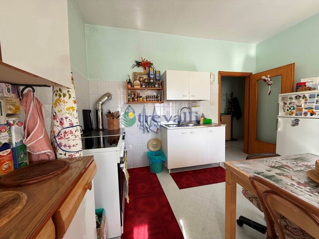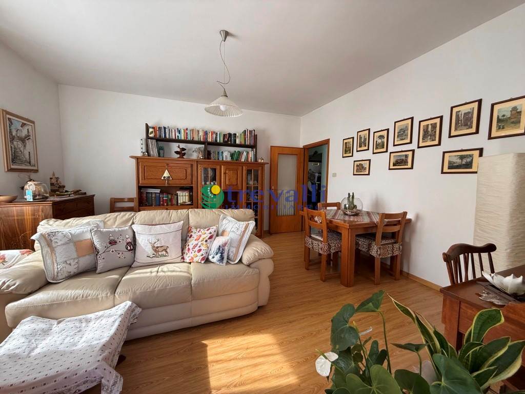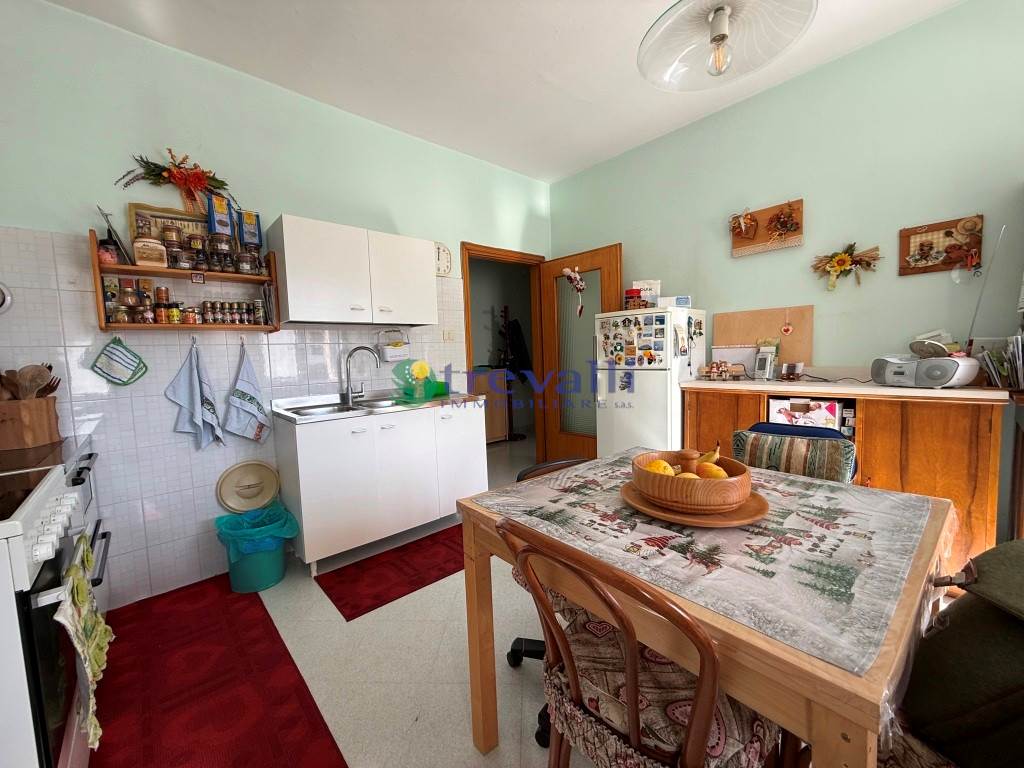 In posizione tranquilla nel paese, a due passi da tutti i servizi (banca, posta, ristoranti, negozi, etc.) viene posto in vendita un appartamento al primo piano, molto pratico e ben disposto libero su quattro lati con ascensore. L'appartamento è composto da ingresso, ampio soggiorno, cucina con balcone, tre grandi stanze matrimoniali (di cui una con balcone), bagno finestrato e ripostiglio.